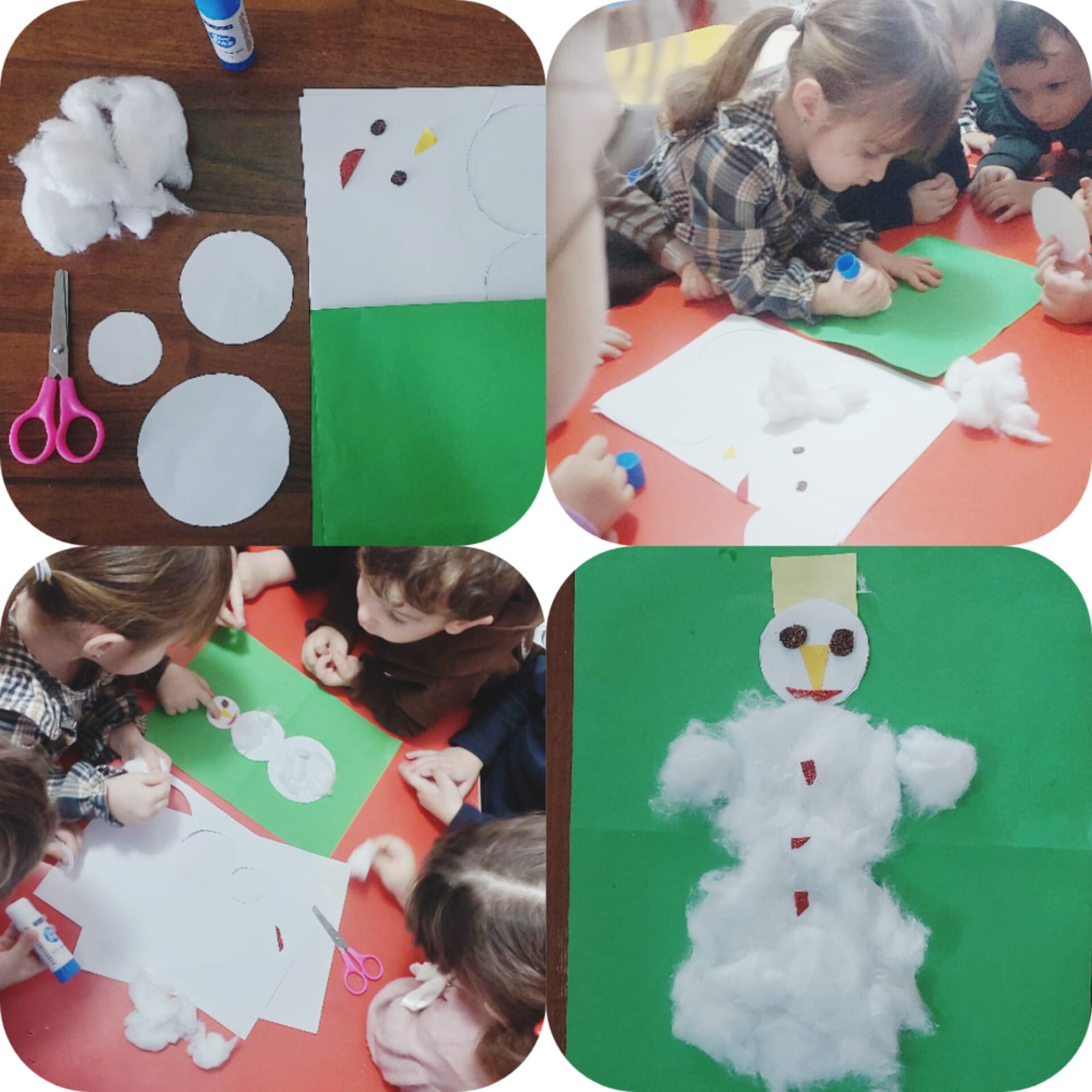 Аппликация из ватных дисков и ваты "Снеговик". Младшая группа "Солнышко".