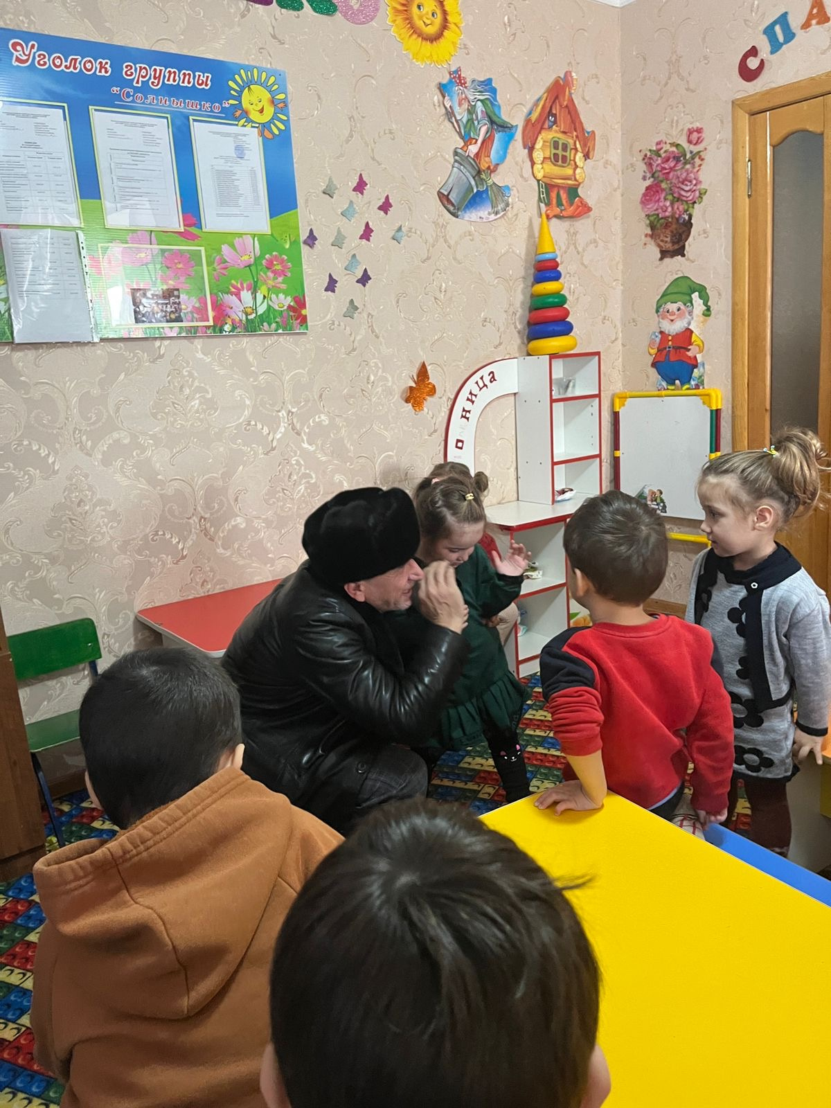 22.01.2025Сегодня наш детский сад посетил начальник МУ ОДО Курчалоевского района Хизриев Идрис Харонович. Он осмотрел все помещения: кухню, кладовку, котельную, игровые и спальные групповые, техническое оснащение( видеонаблюдение и все, что связано с пожарной безопасностью).Провел живой диалог с воспитанниками: задавал вопросы, связанные с нашей республикой, родным селом и религией Ислам. Дети с интересом отвечали на его вопросы. Визит Идриса Хароновича был очень плодотворным для нашей организации. Мы учли рекомендации Идриса Хароновича.