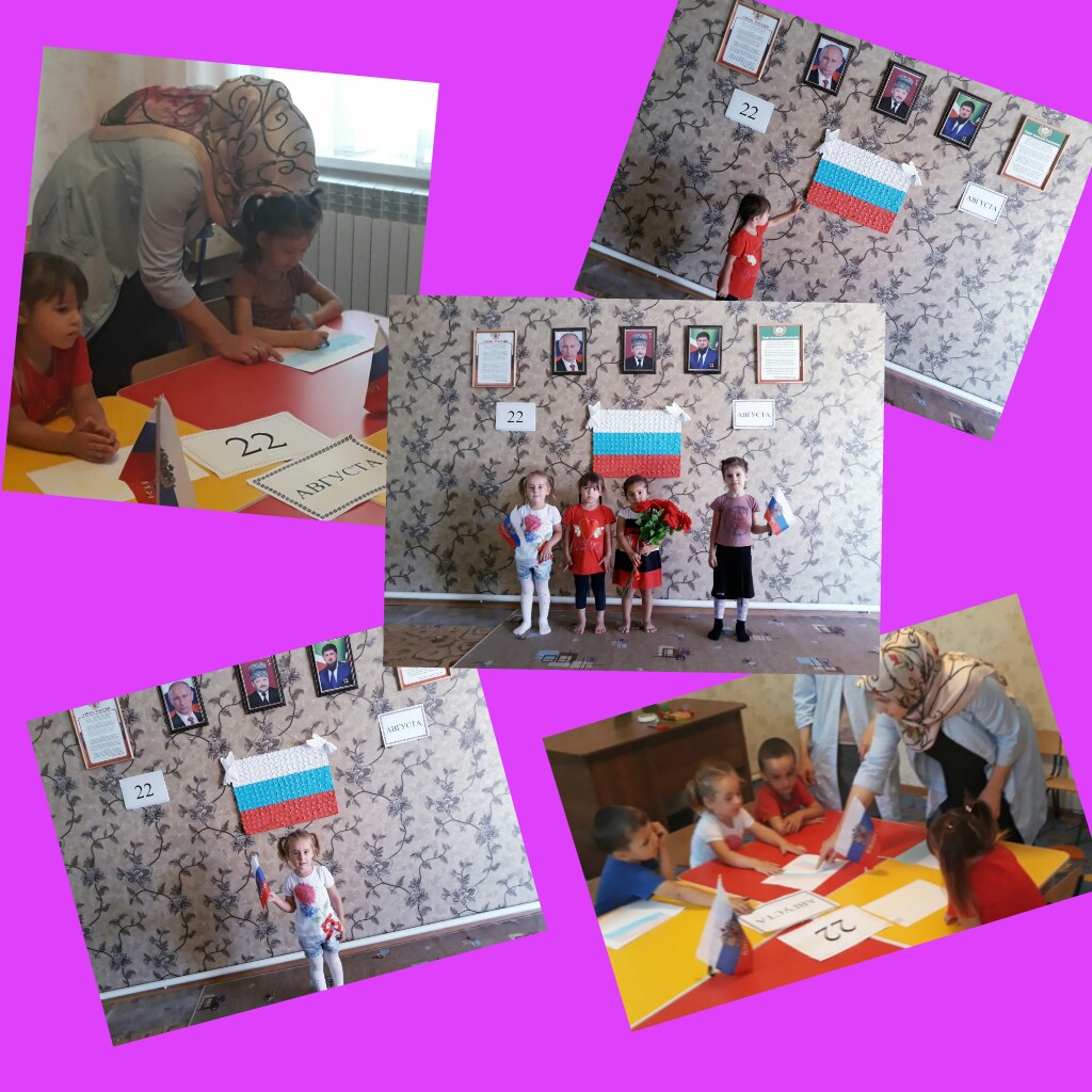 17.08.2018На мероприятии, посвященном Дню Российского Флага дети прочитали стихи; воспитатели в группах провели беседу о праздновании этого дня.