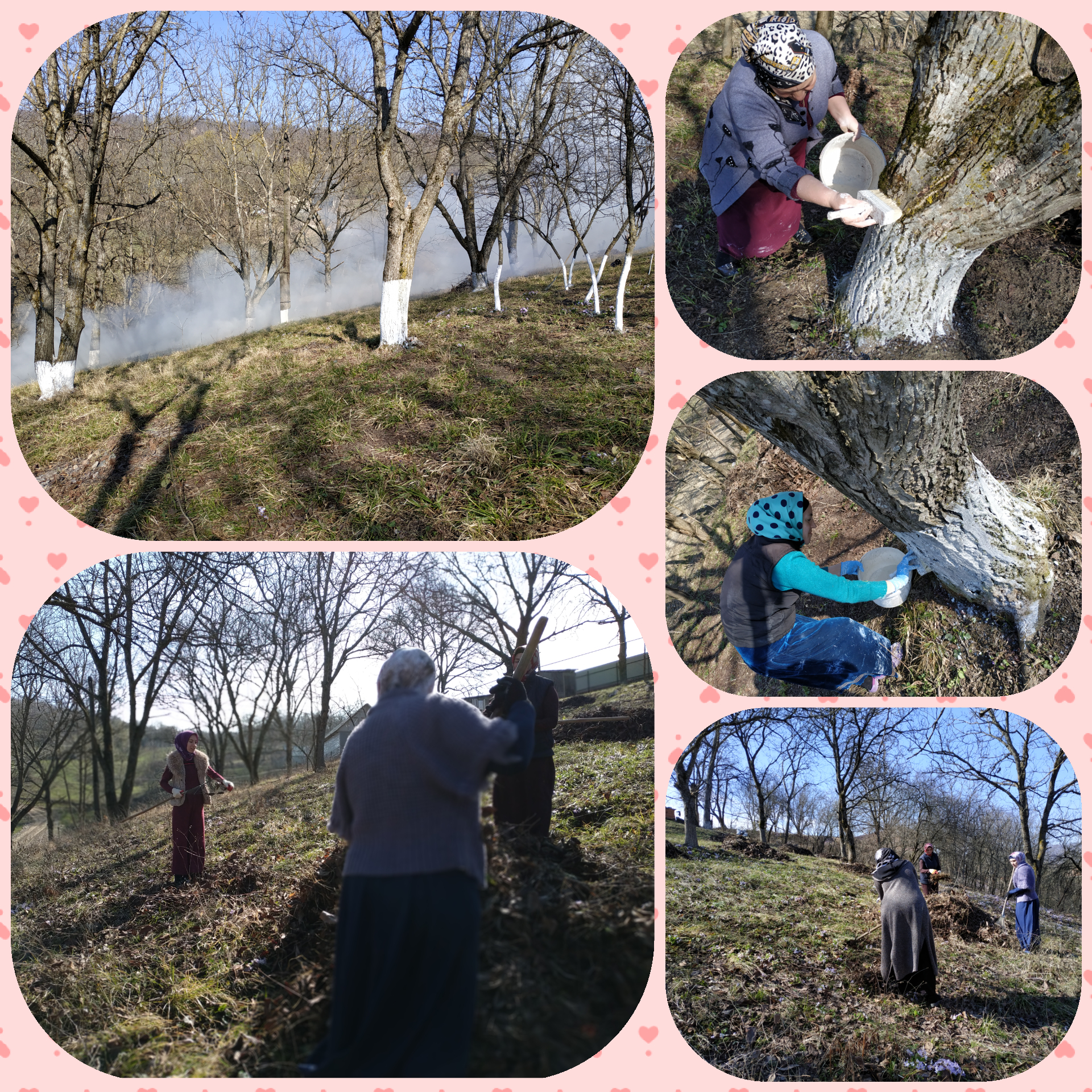 У нас в саду растет много грецких орехов, а при сильном ветре на земле остается много веточек, а в некоторых местах еще и листья остались. Так мы решили провести субботник.